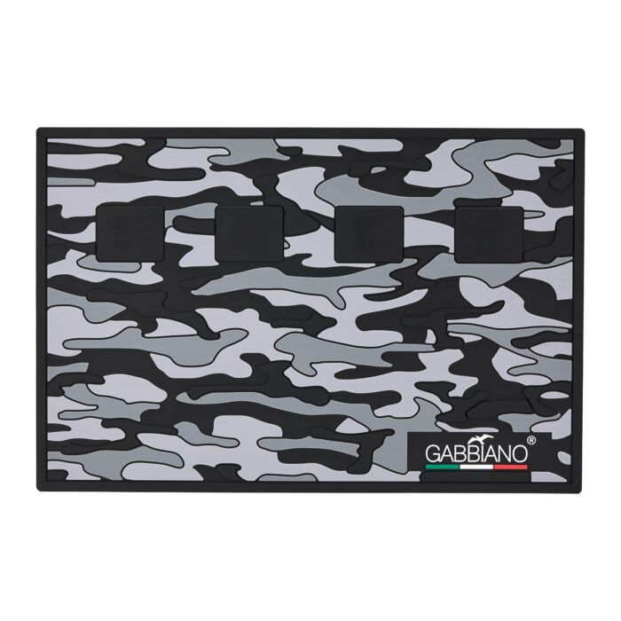 Mata barberska Gabbiano z elementami magnetycznymi to niezbędne akcesorium w każdym profesjonalnym barbershopie. Wykonana z wysokiej jakości gumy, zapewnia doskonałą przyczepność i ochronę dla narzędzi oraz powierzchni roboczych. Antypoślizgowa struktura maty zapobiega przesuwaniu się nożyczek, brzytew i grzebieni, minimalizując ryzyko uszkodzeń. Jest łatwa do czyszczenia – wystarczy przetrzeć ją wilgotną szmatką lub umyć pod bieżącą wodą.