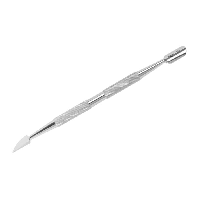 Cążki zostały zaprojektowane z myślą o łatwym i bezpiecznym usuwaniu skórek. Ich ergonomiczny kształt zapewnia wygodny chwyt, a niezwykle ostre ostrza pozwalają na precyzyjne cięcie bez ryzyka uszkodzenia skóry. Wykonane z wysokiej jakości stali nierdzewnej, są odporne na korozję i łatwe w dezynfekcji. Dwustronne kopytko to wszechstronne narzędzie, które umożliwia zarówno delikatne odsuwanie skórek, jak i ich skuteczne usuwanie. Jedną końcówką jest zaokrąglony pusher, idealny do modelowania i odsuwania skórek bez podrażnień. Z drugiej strony znajduje się końcówka w formie ściętego trójkątnego nożyka, która pozwala precyzyjnie usuwać uporczywe, zrogowaciałe fragmenty naskórka.