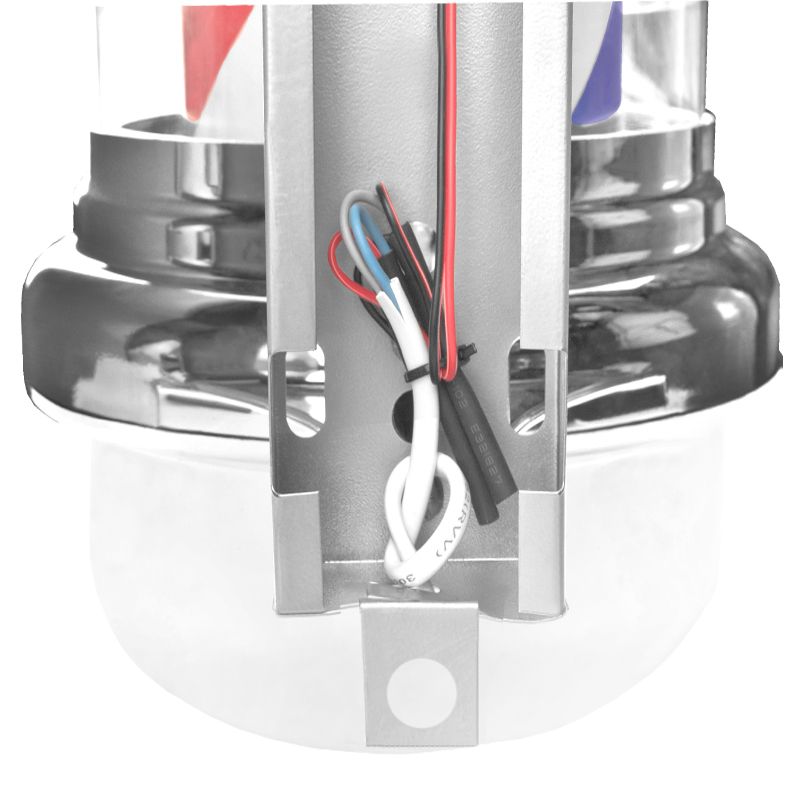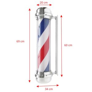 Przykuwający wzrok plafon podświetlany, wyposażony w obrotowy cylinder, stanowi doskonałą reklamę dla barbershopu. Charakterystyczny design, z obracającymi się elementem w kolorach czerwonym, białym i niebieskim, tworzy wyjątkową, międzynarodowo rozumianą wizytówkę salonu fryzjerskiego. Za pomocą pilota na przewodzie można włączać zarówno oświetlenie, jak i obroty plafonu.