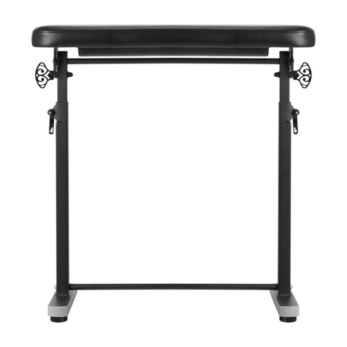 Podłokietnik posiada możliwość regulacji wysokości w granicach 68-111 cm, co pozwala dostosować go do różnych klientów i gwarantuje optymalne podparcie podczas sesji tatuażu. Dzięki funkcji regulacji nachylenia, można dostosować ustawienie podłokietnika do indywidualnych potrzeb klienta, co zapewnia jeszcze większy komfort podczas wykonywania tatuażu.