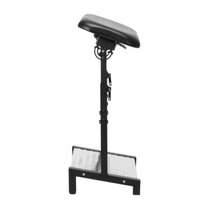 Wysokość podłokietnika można regulować w granicach 72-110 cm, co pozwala dostosować go do różnych klientów oraz gwarantuje optymalne podparcie podczas sesji tatuażu. Model ten wyposażono w metalowy podnóżek, który pomaga zająć ergonomiczną pozycję osobie wykonującej tatuaż. Funkcja regulacji nachylenia na boki ułatwia dostosowanie ustawienia podłokietnika, co zapewnia jeszcze większy komfort podczas wykonywania tatuażu. Istotną funkcją tego modelu jest opcja niezależnej regulacji wysokości obu stron podłokietnika, co zapewnia specjalny rozsuwany element od spodu. Szerokie możliwości regulacji znacząco wpływają na ergonomię pracy oraz komfort klienta.