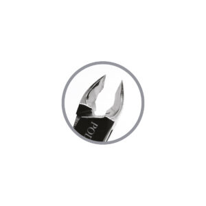 Cążki do usuwania skórek zostały wykonane z najwyższej jakości stali nierdzewnej. To wytrzymałe i precyzyjne narzędzie z ostrą powierzchnią tnącą (0,5 cm). Specjalna konstrukcja ostrza powoduje, że cążki znakomicie sprawdzają się zarówno w pracy przy stopach, jak i dłoniach. Model jest wyposażony w zabezpieczony dwusprężynowy mechanizm. Narzędzie może być sterylizowane w autoklawie. Cążki są polecane zwłaszcza do stosowania w gabinetach kosmetycznych i podologicznych.
