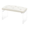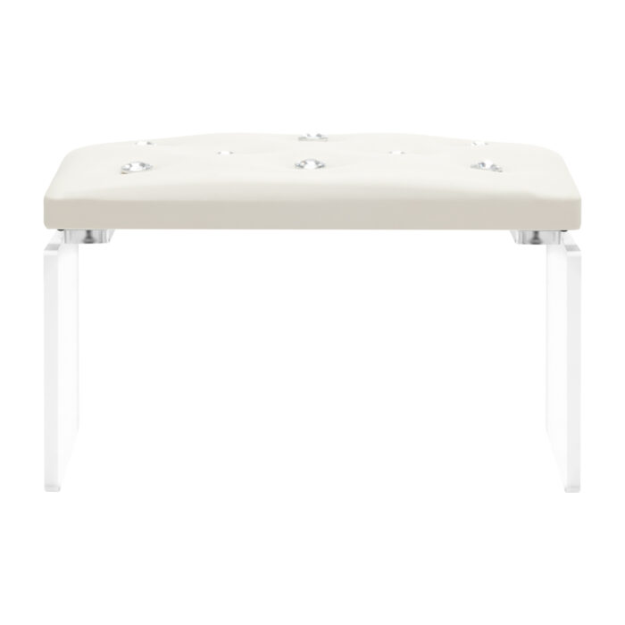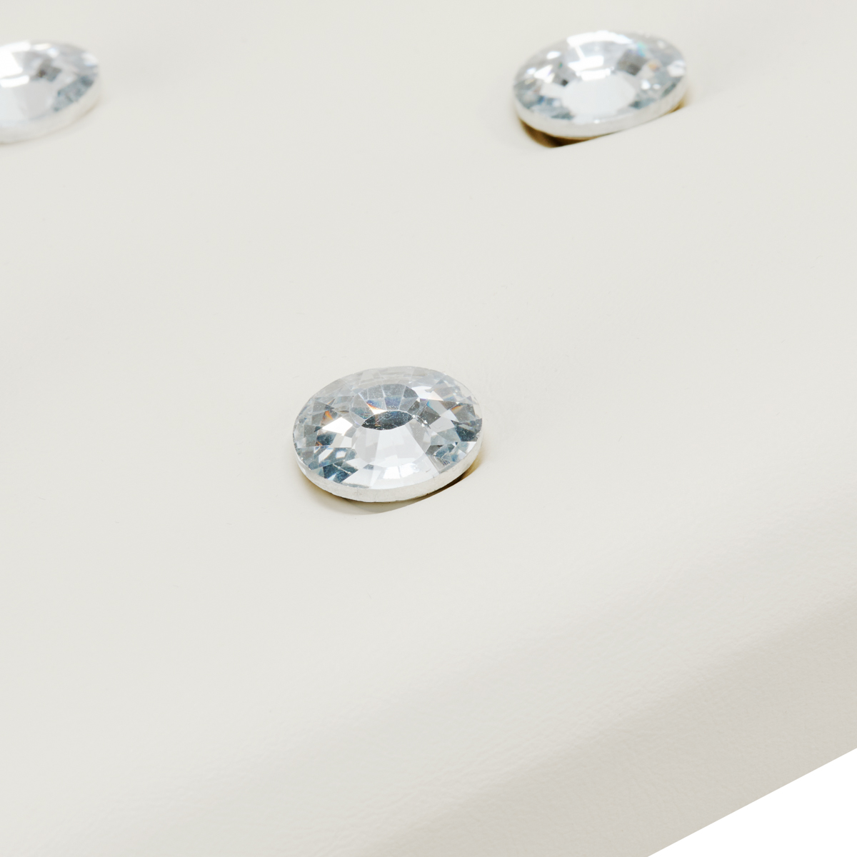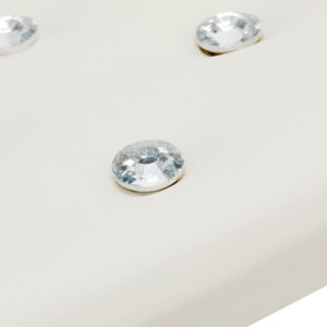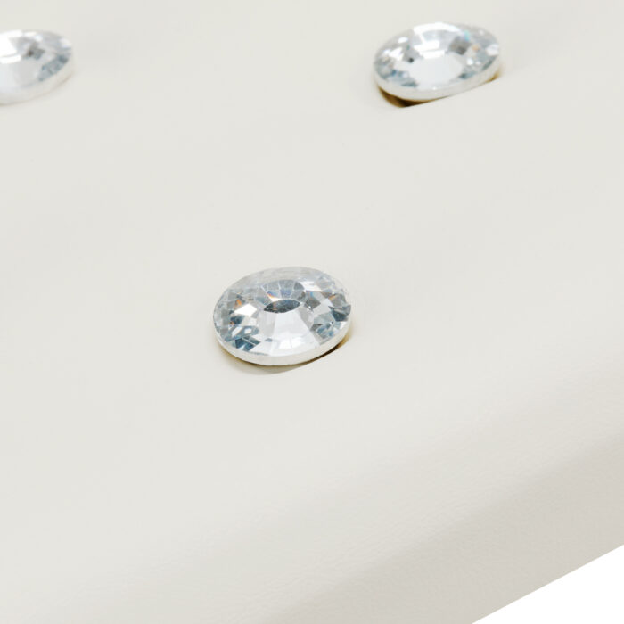 Odpowiednia wysokość podpórki zapewnia wygodną pozycję zarówno dla klienta, jak i dla stylistki. Poprawna postawa stylistki minimalizuje obciążenie kręgosłupa, skutecznie redukując ból pleców, a klientce zapewnia to większy komfort i relaks. Silikonowe elementy na nóżkach chronią blat przed zarysowaniami i zapobiegają przesuwaniu się na stole, gwarantują stabilność. Stelaż z tworzywa sztucznego i łatwa w czyszczeniu skóra syntetyczna zapewniają długą trwałość produktu, a ozdobne kryształki nadają mu wyjątkowy wygląd.