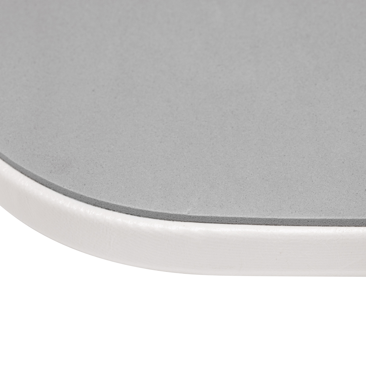 Duża powierzchnia kwadratowej podpórki eliminuje konieczność celowania łokciem w podpórkę, zapewniając pewność i stabilność podczas pracy, co przekłada się na zapobieganie ześlizgnięciu się łokcia. Doskonale amortyzuje oraz stanowi wygodne podparcie, skutecznie zapobiegając otarciom okolicy stawu łokciowego. Wypełnienie z pianki łatwo dostosowuje się do kształtu łokcia, a pokrycie z przyjemnej w dotyku skóry syntetycznej w odcieniach bieli zapewnia łatwość czyszczenia oraz trwałość produktu. Antypoślizgowy materiał na spodzie zapobiega przesuwaniu się podpórki, co zwiększa stabilność i bezpieczeństwo podczas użytkowania. Dzięki wysokiej jakości materiałom i starannemu wykonaniu, produkt spełni oczekiwania nawet najbardziej wymagających użytkowników.