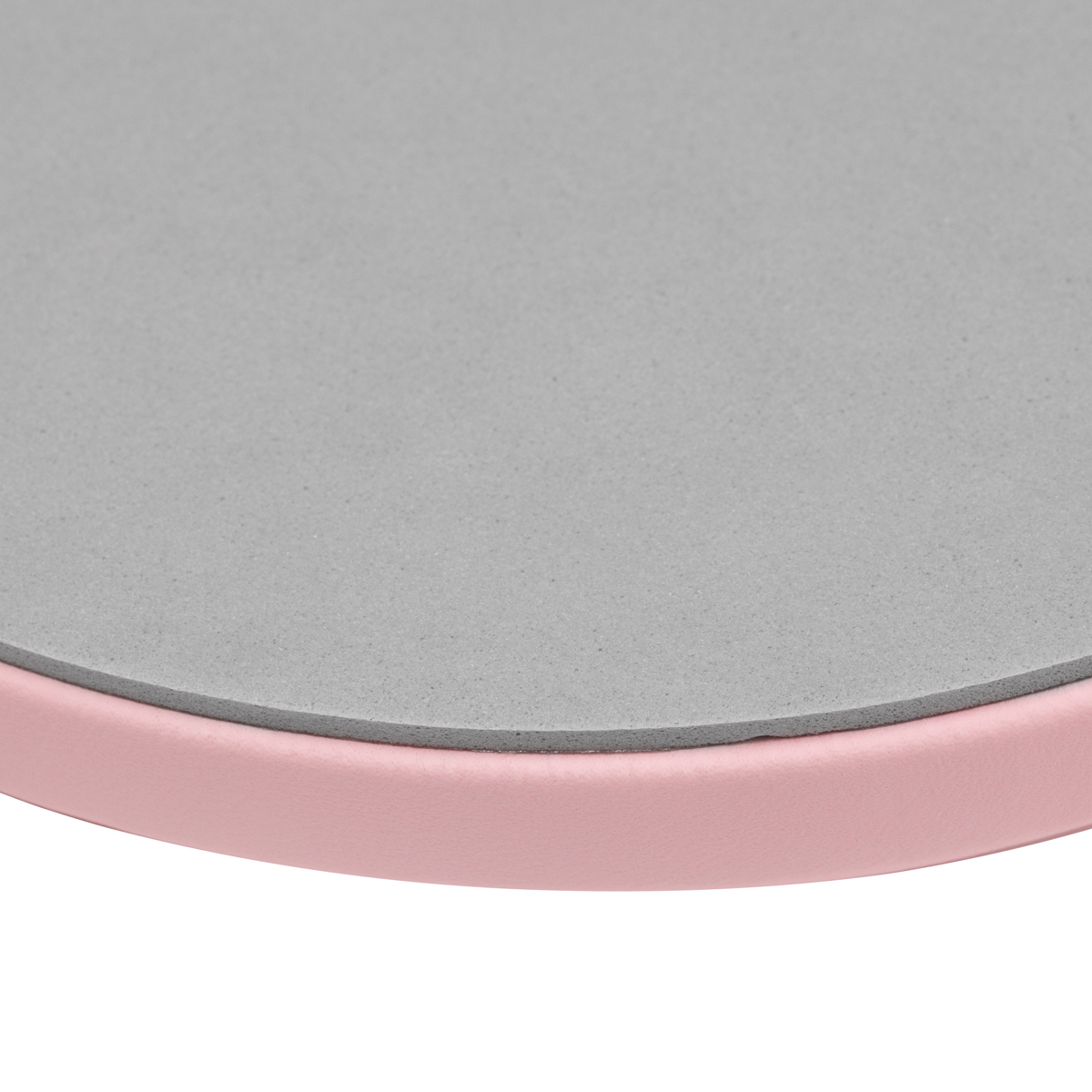 Duża powierzchnia okrągłej podpórki eliminuje konieczność celowania łokciem w podpórkę, zapewniając pewność i stabilność podczas pracy, co przekłada się na zapobieganie ześlizgnięciu się łokcia. Doskonale amortyzuje oraz stanowi wygodne podparcie, skutecznie zapobiegając otarciom okolicy stawu łokciowego. Wypełnienie z pianki łatwo dostosowuje się do kształtu łokcia, a pokrycie z przyjemnej w dotyku skóry syntetycznej w odcieniach różu zapewnia łatwość czyszczenia oraz trwałość produktu. Antypoślizgowy materiał na spodzie zapobiega przesuwaniu się podpórki, co zwiększa stabilność i bezpieczeństwo podczas użytkowania. Dzięki wysokiej jakości materiałom i starannemu wykonaniu, produkt spełni oczekiwania nawet najbardziej wymagających użytkowników.