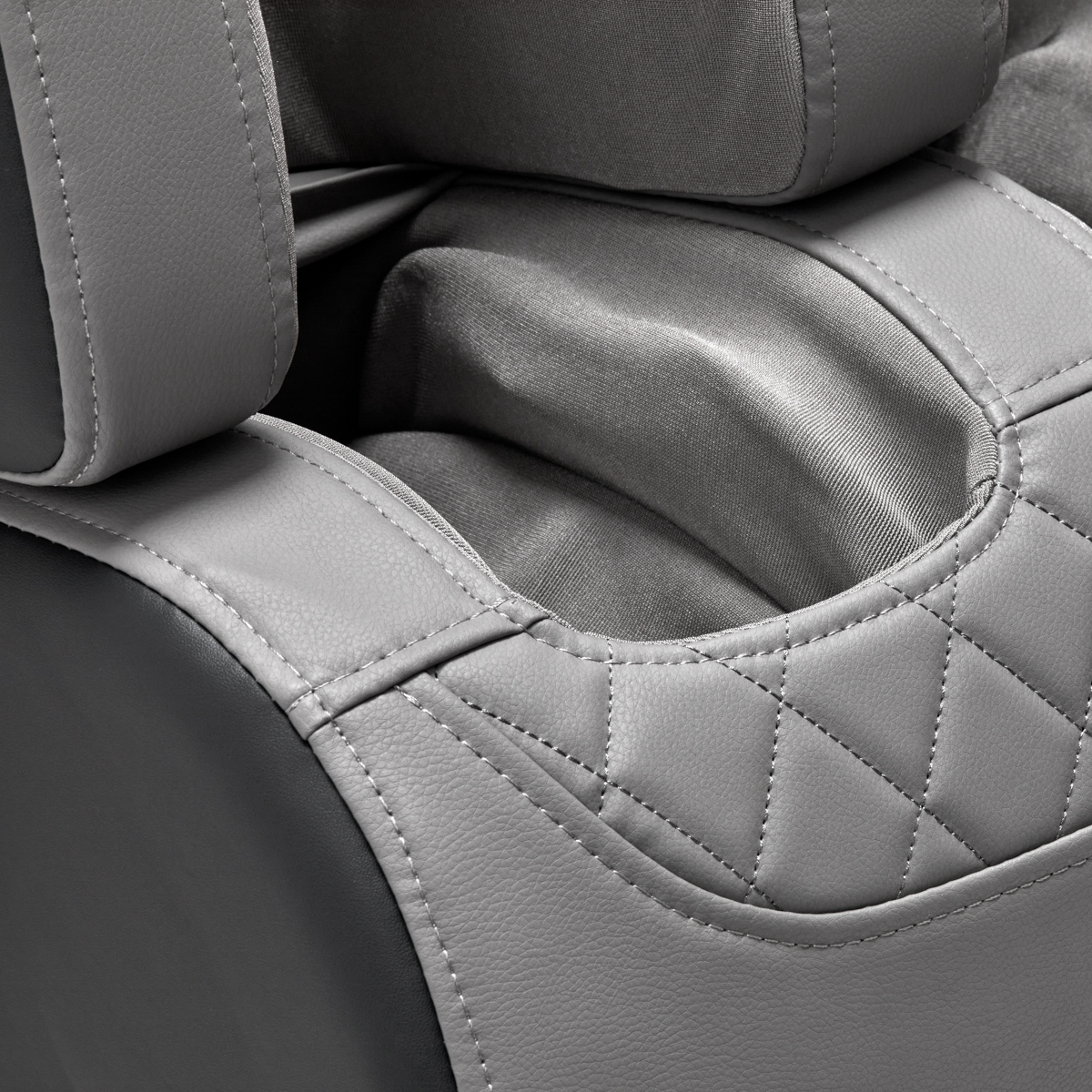 Wygodne wnętrze fotela pokryte jest przyjemną w dotyku imitacją skóry w odcieniach szarości. Zastosowanie takiego materiału sprawia, że jest wysoce odporny na wilgoć oraz łatwy w czyszczeniu. Imitacja skóry w odcieniach szarości na zewnętrznych częściach fotela sprawia, że produkt prezentuje się niezwykle oryginalnie, a zarazem elegancko. Starannie wykonane obszycia nadają mu stylowy wygląd, a solidna konstrukcja gwarantuje długie użytkowanie. Kompaktowy model o estetycznym wykończeniu i klasycznej kolorystyce świetnie wpasuje się w każde wnętrze. Fotel masujący Sakura Classic 305 to doskonały sposób na relaks w dowolnej chwili, zwłaszcza po wyczerpującym dniu lub ciężkim treningu.