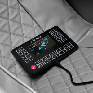 Dzięki przejrzystemu panelowi sterowania – który możemy umieścić na uchwycie zamontowanym na prawym podłokietniku bądź trzymać w dłoniach – korzystanie z fotela jest proste i przyjemne. Na wyrazistym ekranie LCD można śledzić pracę urządzenia. Wyraźnie wyświetlane są obszary ciała, na których w danym momencie przeprowadzany jest masaż, jego intensywność, czas zabiegu oraz wybrany program. Panel pozwala na swobodne dostosowywanie ustawień fotela oraz funkcji masażu, a także ustalenie czasu trwania zabiegu, który może trwać 5, 10, 15, 20, 25 lub 30 minut.