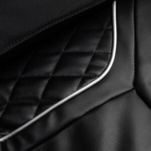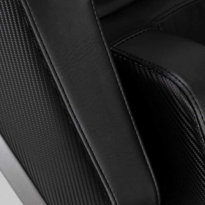Miękka imitacja skóry w odcieniach czerni zapewnia wyjątkowy komfort użytkowania oraz łatwość w utrzymaniu czystości. Materiał ten jest nie tylko estetyczny, ale również odporny na wilgoć, co podnosi jego funkcjonalność. Zewnętrzne elementy w kolorze srebra w połączeniu ze strukturalnym wykończeniem w tonacji czerni nadają fotelowi nowoczesny, stylowy wygląd. Kompaktowa forma oraz stonowana kolorystyka sprawiają, że model harmonijnie wpisuje się w różnorodne aranżacje wnętrz. Sakura Prime 108 to doskonały wybór dla osób poszukujących codziennego relaksu – zwłaszcza po intensywnym dniu lub wymagającym wysiłku fizycznym.