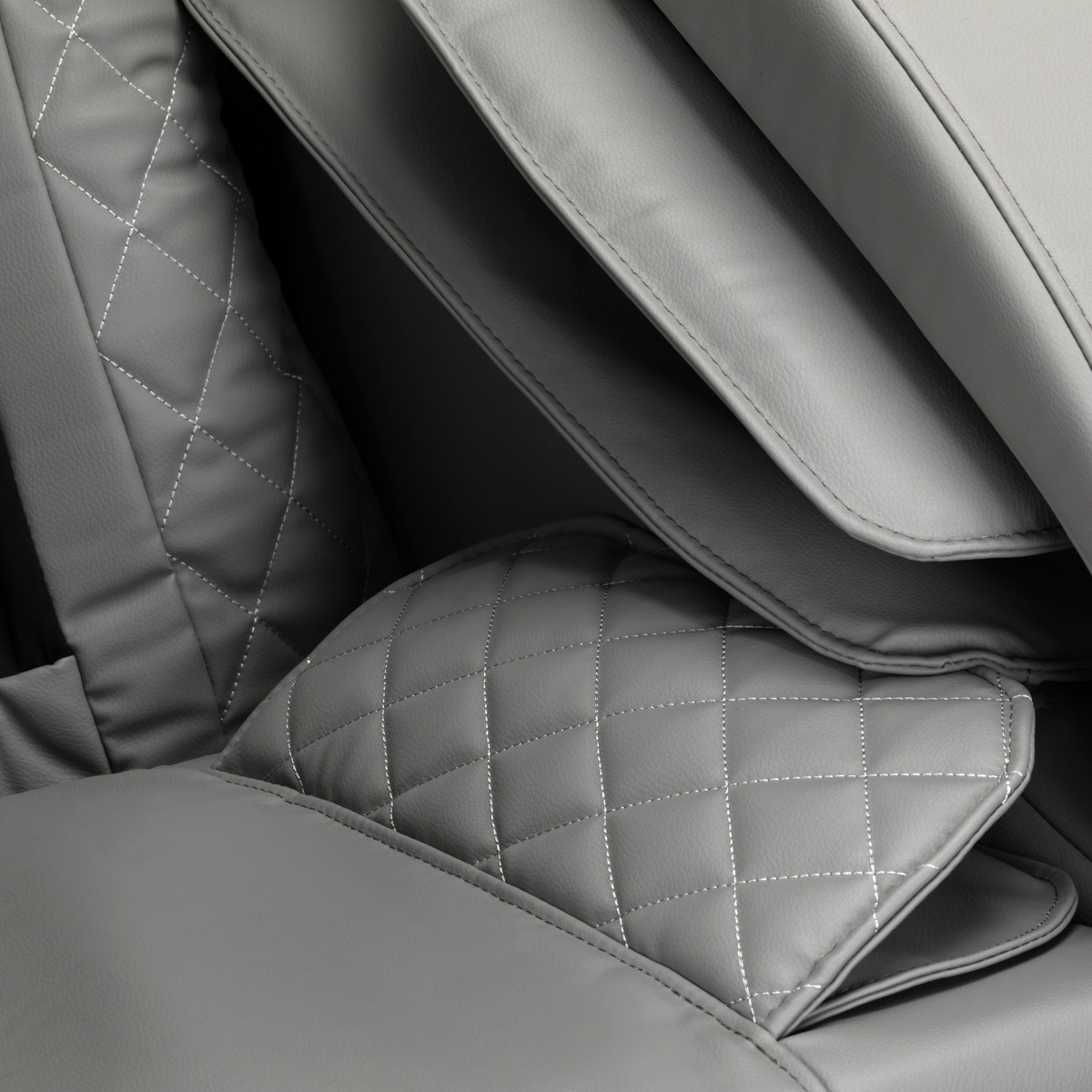 Ergonomiczny kształt fotela zapewnia odpowiednie podparcie dla pleców, karku i nóg. Wygodne wnętrze fotela pokryte jest przyjemną w dotyku skórą syntetyczną w odcieniach szarości, a środek wypełnia komfortowa, trwała pianka, zapewniająca wysoki komfort użytkowania. Zastosowanie takich materiałów sprawia, że sprzęt jest wytrzymały, odporny na wilgoć oraz łatwy w czyszczeniu. Starannie wykonane obszycia nadają mu stylowy wygląd, a solidna konstrukcja gwarantuje długie użytkowanie. Funkcjonalny model o estetycznym wykończeniu i klasycznej kolorystyce świetnie wpasuje się w każde wnętrze. Fotel masujący Sakura Standard 801 to doskonały sposób na relaks w dowolnej chwili, zwłaszcza po wyczerpującym dniu lub ciężkim treningu.