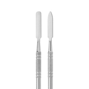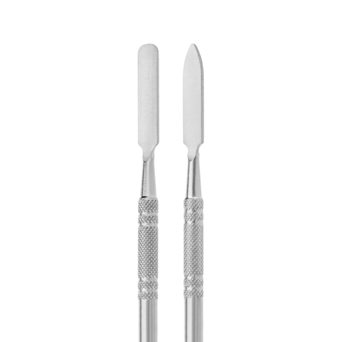 W zestawie znajduje się również dwustronna bagietka o półmatowym wykończeniu, która ułatwia mieszanie produktów. Narzędzie posiada dwie funkcjonalne końcówki o różnych kształtach, wykorzystywane w zależności od potrzeb. Przyrząd świetnie leży w dłoni, a dzięki eleganckiemu rowkowaniu na uchwycie, nie ślizga się w niej, co znacznie ułatwia pracę.
