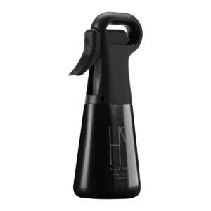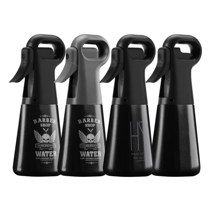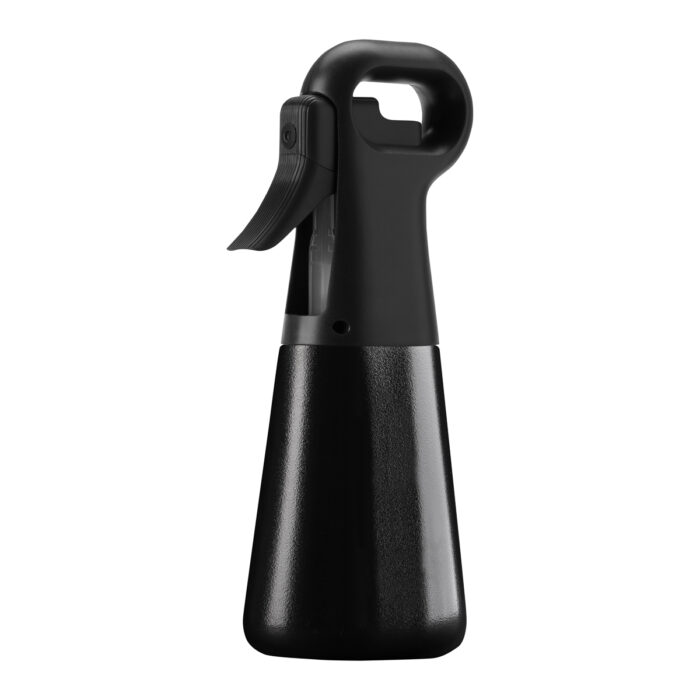 Profesjonalny spryskiwacz fryzjerski. Po naciśnięciu rączki wytwarza się podciśnienie w spryskiwaczu i następuje wypuszczenie wody. Innowacyjna dysza wytwarza mgiełkę, która wydostaje się ze spryskiwacza przez około 1-2 sekundy.