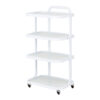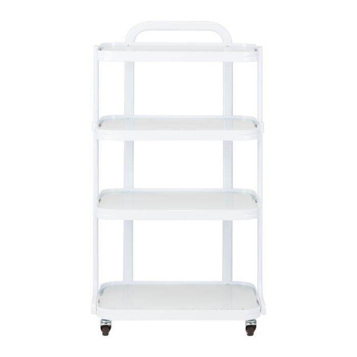 Stolik kosmetyczny Giovanni H6702 to praktyczny mebel, który doskonale sprawdzi się w każdym salonie kosmetycznym czy gabinecie SPA. Konstrukcja mebla sprawia, że jest stabilny, ale jednocześnie lekki, co przekłada się na efektywność pracy. Cztery szklane półki umożliwiają wygodne przechowywanie i organizację kosmetyków, akcesoriów oraz sprzętu niezbędnego podczas zabiegów. Minimalistyczne wykończenie dodaje wnętrzom profesjonalnego charakteru.