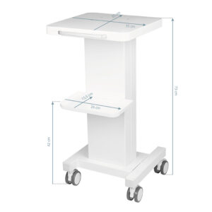 Funkcjonalny, metalowy stolik z gumowymi kółkami z funkcją blokady. Iidealnie sprawdza się jako stolik pod urządzenie kosmetyczne. Posiada stabilną półkę na urządzenie oraz drugą na akcesoria a dzięki kółką stolik jest mobilny i łatwy do przesuwania. Mebel zapewnia wygodę i komfort podczas pracy