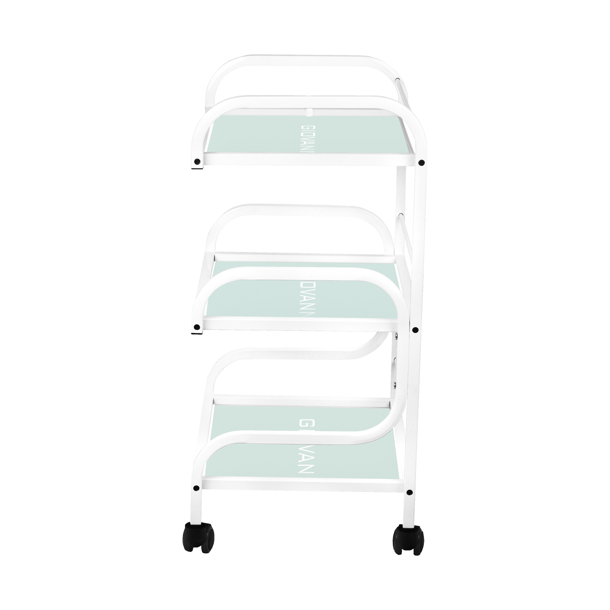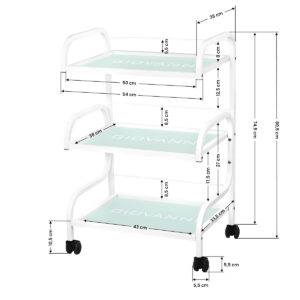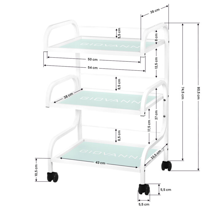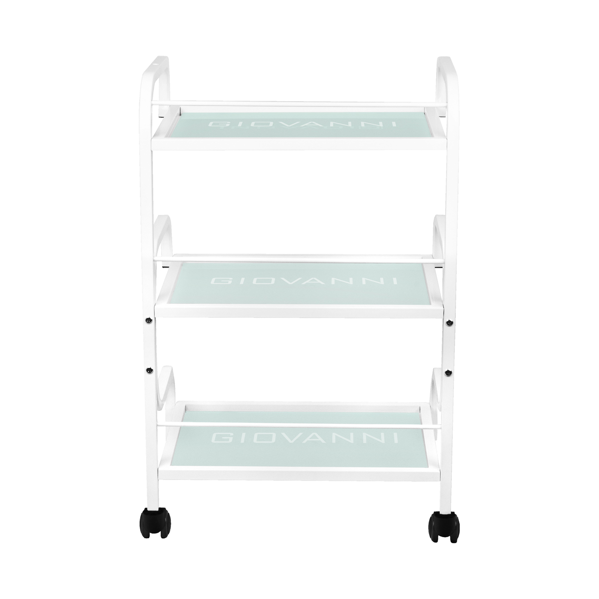 z kółkami. Posiada trzy szklane półki z grawerowanym logo GIOVANNI.