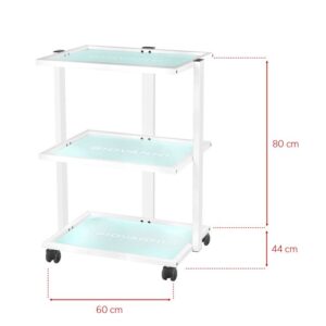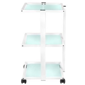 z gumowanymi kółkami. Posiada trzy szklane półki z grawerowanym logo GIOVANNI. Istnieje możliwość przymocowania do niego lampy-lupy.