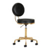Ten czarno-złoty taboret posiada wygodne siedzisko oraz oparcie pokryte skórą ekologiczną. Znajduje się na stabilnej pięcioramiennej podstawie. Skonstruowany z metalowych części jest trwały i odporny na zniszczenia. Wysokość siedziska jest sprawnie regulowana. Plastikowe kółka pozwalają na łatwą zmianę położenia. Siedzisko jest w pełni obrotowe.