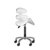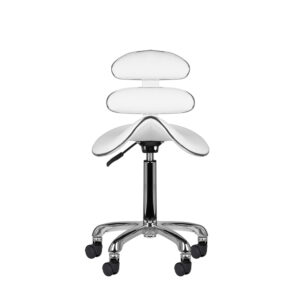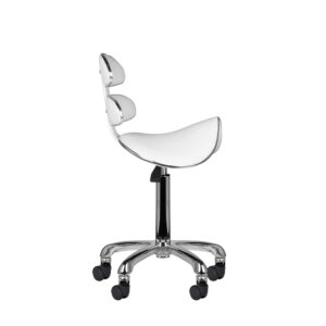 Wygodny, stabilny taboret kosmetyczny z profilowanym siedziskiem i ergonomicznym oparciem. Osadzony na pięcioramiennej podstawie z rewelacyjnymi plastikowymi Roll Speed, które gwarantują lekkośc w przemieszczaniu się. Wykonany z eko-skóry w kolorze białym.