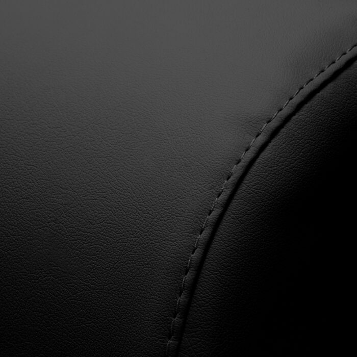Pięcioramienna, solidna podstawa zapewnia wyjątkową stabilność taboretu, nawet podczas intensywnego użytkowania. Gumowane kółka umożliwiają jego łatwe i płynne przemieszczanie, nie niszcząc przy tym podłogi. Krzesło cechuje się trwałością i stabilnością, a jego obicie z wysokiej jakości imitacji skóry w odcieniach czerni jest odporne na wilgoć i łatwe do utrzymania w czystości, co dodatkowo podnosi komfort użytkowania.