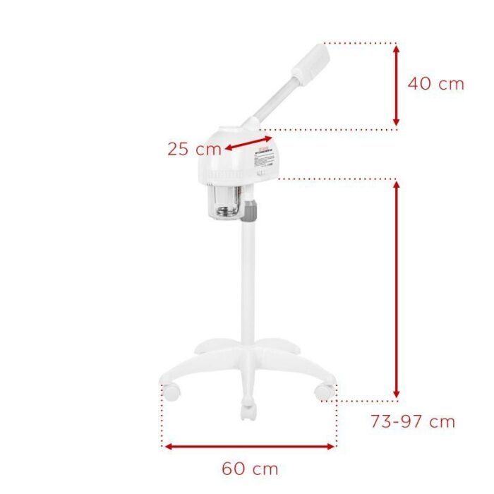 Wielofunkcyjny wapozon z ciepłą parą i ozonem. Wapozon osadzony jest na statywie z regulowaną wysokością. Urządzenie to jest niezbędnym urządzeniem w każdym gabinecie kosmetycznym.