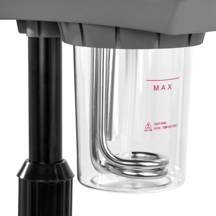 Wapozon wykonano z tworzywa sztucznego w odcieniach czerni, co sprawia, że urządzenie łatwo utrzymać w czystości. Statyw wyposażony jest w prostą regulację wysokości w zakresie 78-95 cm, co pozwala na ustawienie sprzętu na odpowiednim poziomie, by zapewnić komfort pracy osobie wykonującej zabieg. Dyszę wapozonu można obracać, co zwiększa zakres możliwego ustawienia. Czteroramienna podstawa o gumowanych kółkach poprawia mobilność, ułatwiając swobodne przestawianie urządzenia.