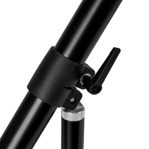 Teleskopowa konstrukcja daje możliwość dostosowania długości ramienia w zakresie od 73 do 131 cm. Regulacja kąta ułożenia statywu zapewnia znaczną swobodę ruchu w pionie i poziomie, umożliwiając precyzyjne skierowanie oświetlenia w wybranym kierunku. Dwustronny trzpień montuje się w jednym z trzech otworów, co pozwala dobrać odpowiednie ustawienie oświetlenia do własnych potrzeb.