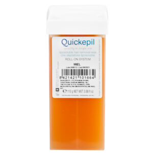 Wosk QUICKEPIL roll-on jest specjalnie stworzony dla kosmetyczek, które szukają znakomitych rezultatów. Dzięki specjalnej recepturze rolka rozciąga wosk na znacznie cieńsze paski co powoduje, że stygnie niemal natychmiast minimalizując pieczenie. Produkt jest następnie łatwo usunąć za pomocą pasków. Uniwersalny wosk do każdego rodzaju skóry na bazie wosków pszczelich.