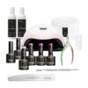 Zestaw zawiera niezbędne produkty do wykonania stylizacji paznokci. Znajdują się w nim zarówno lakiery hybrydowe, płyny i preparaty, jak i akcesoria. Dodatkowo uzupełniony jest o profesjonalną lampę do utwardzania paznokci hybrydowych.