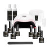 Zestaw zawiera niezbędne produkty do wykonania stylizacji paznokci. Znajdują się w nim zarówno lakiery hybrydowe, płyny i preparaty, jak i akcesoria. Dodatkowo uzupełniony jest o profesjonalną lampę do utwardzania paznokci hybrydowych.