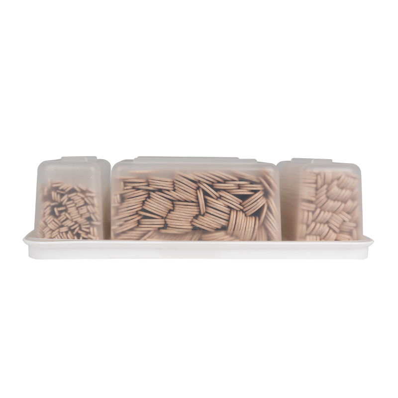 Pudełko zawiera pakiet drewnianych szpatułek do depilacji o różnych rozmiarach.